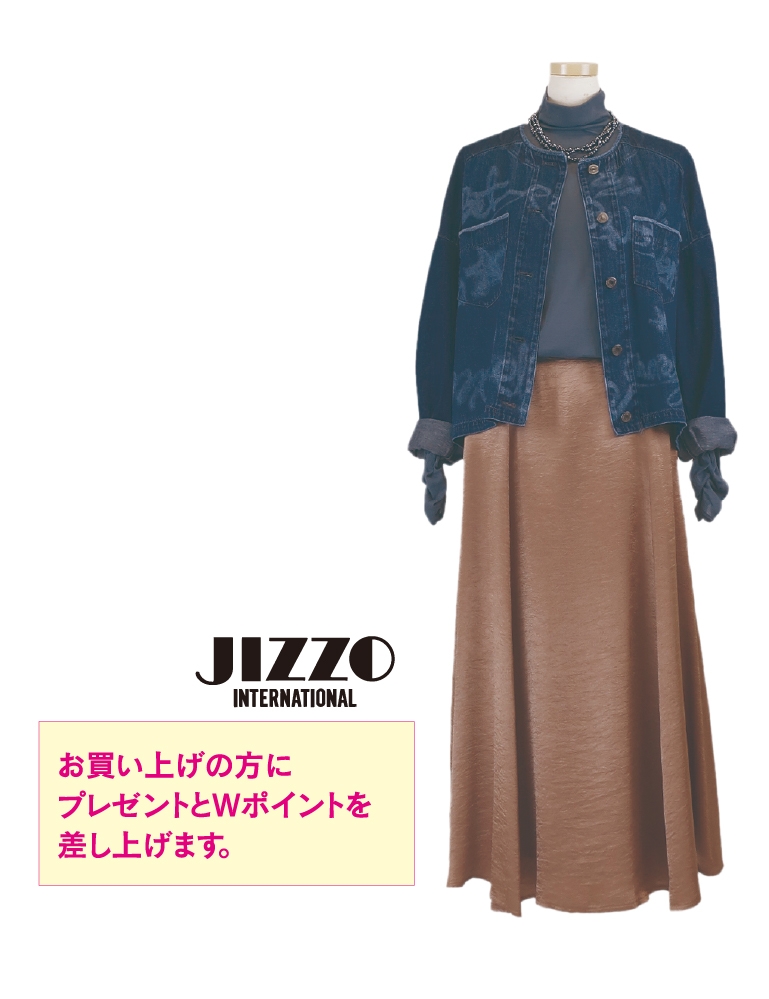 ■10月15日(水)〜31日(金) カジュアルなデニムウエアも、ワッシャーサテンのスカートとの組み合わせでグッと上品に。 ●ジャケット 39,600円 ●カットソー 14,300円 ●スカート 25,300円 [PRESENT&W-point] お買い上げの方にプレゼントとWポイントを差し上げます。 ■6階 ジッツォ