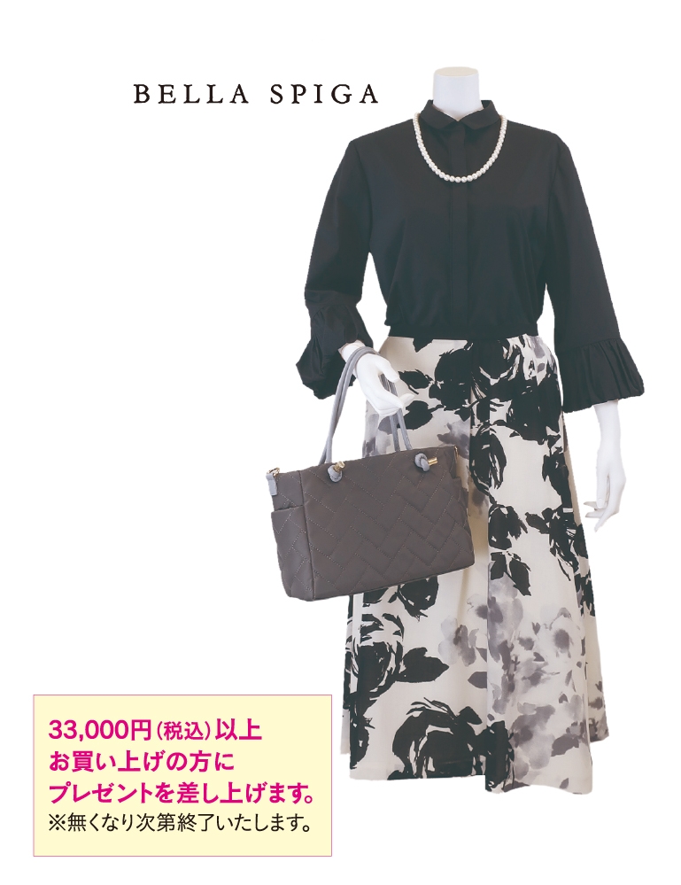 ■10月10日(金)〜19日(日) ブラウスの袖口、ギャザーがポイントです。お食事会やフォーマルシーンなど幅広くご利用いただける上品なスタイルです。 ●ブラウス 53,900円 ●スカート 47,300円 [PRESENT] 33,000円(税込)以上お買い上げの方にプレゼントを差し上げます。 ※無くなり次第終了いたします。 ■6階 ベラ スピーガ