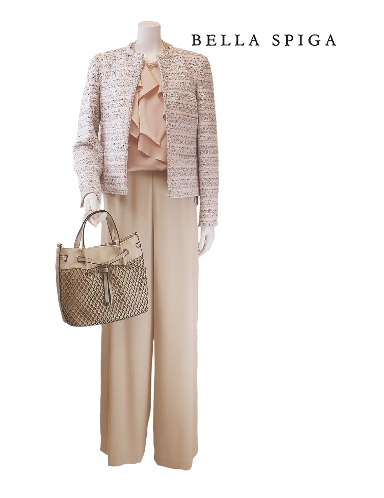 ■3月25日(水)〜31日(火) 春のツィードジャケットとワイドパンツのコーデで、セレモニーを華やかに演出します。 〈ダナパリ〉 ジャケット 154,000円 パンツ 42,900円 ■6階 ベラスピーガ