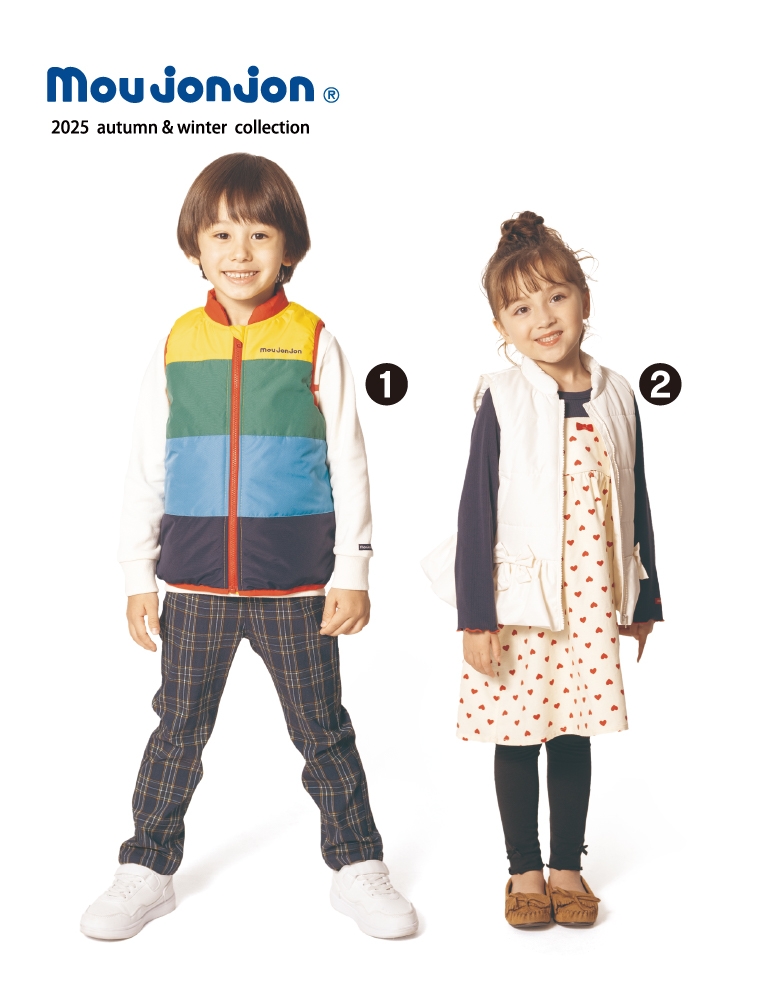 ■11月12日(水)〜25日(火) アウターなど秋冬の商品を 20%OFF ※一部割引除外商品があります。 ❶ビビッドな色合いで、見た目も楽しいベスト。 中綿入りベスト 3,432円 ❷前面の2つのリボンが可愛いベストです。 中綿入りベスト 3,432円 ■7階 ムージョンジョン